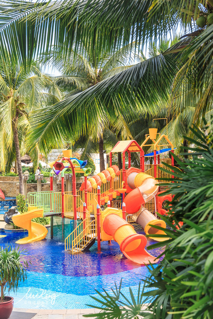 值得一说的是海棠湾喜来登的亲子设施十分完善,亲子活动也丰富多彩。可以租借婴儿车、乘坐儿童小火车,连泳池都有专门的儿童水乐园,早饭时还看到服务人员给小朋友提供了儿童餐具,还遇到了cos海洋生物的工作人员。