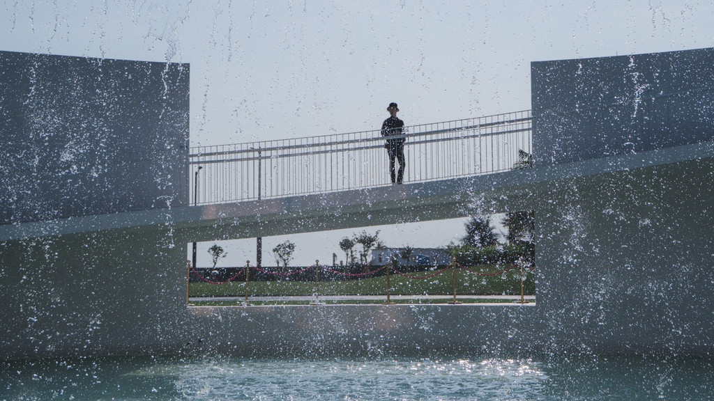 在教堂的底下是从上方的水流而下 形成一副水窗
