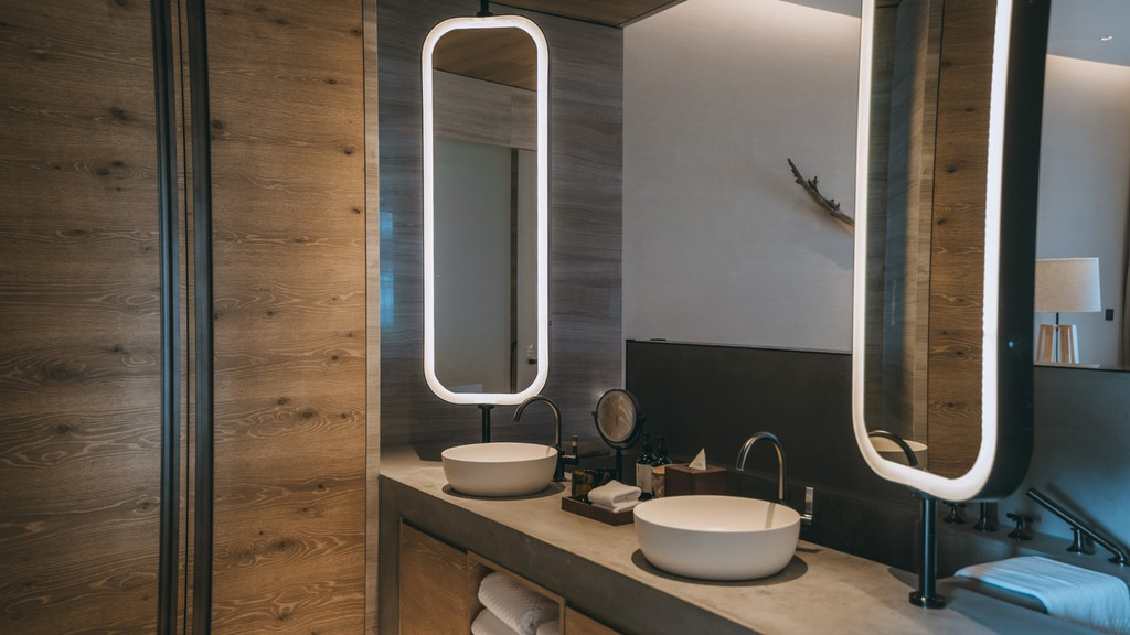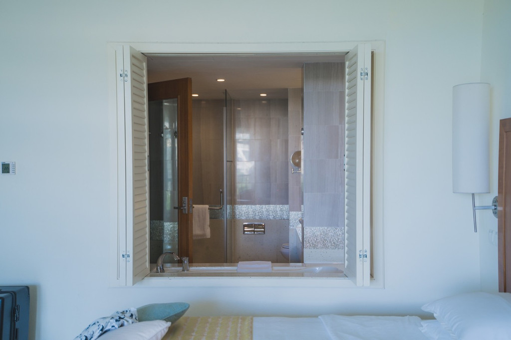 说到房间设计 很喜欢房间与卫生间浴缸中间的连接处 是一扇可以双开的木质窗门