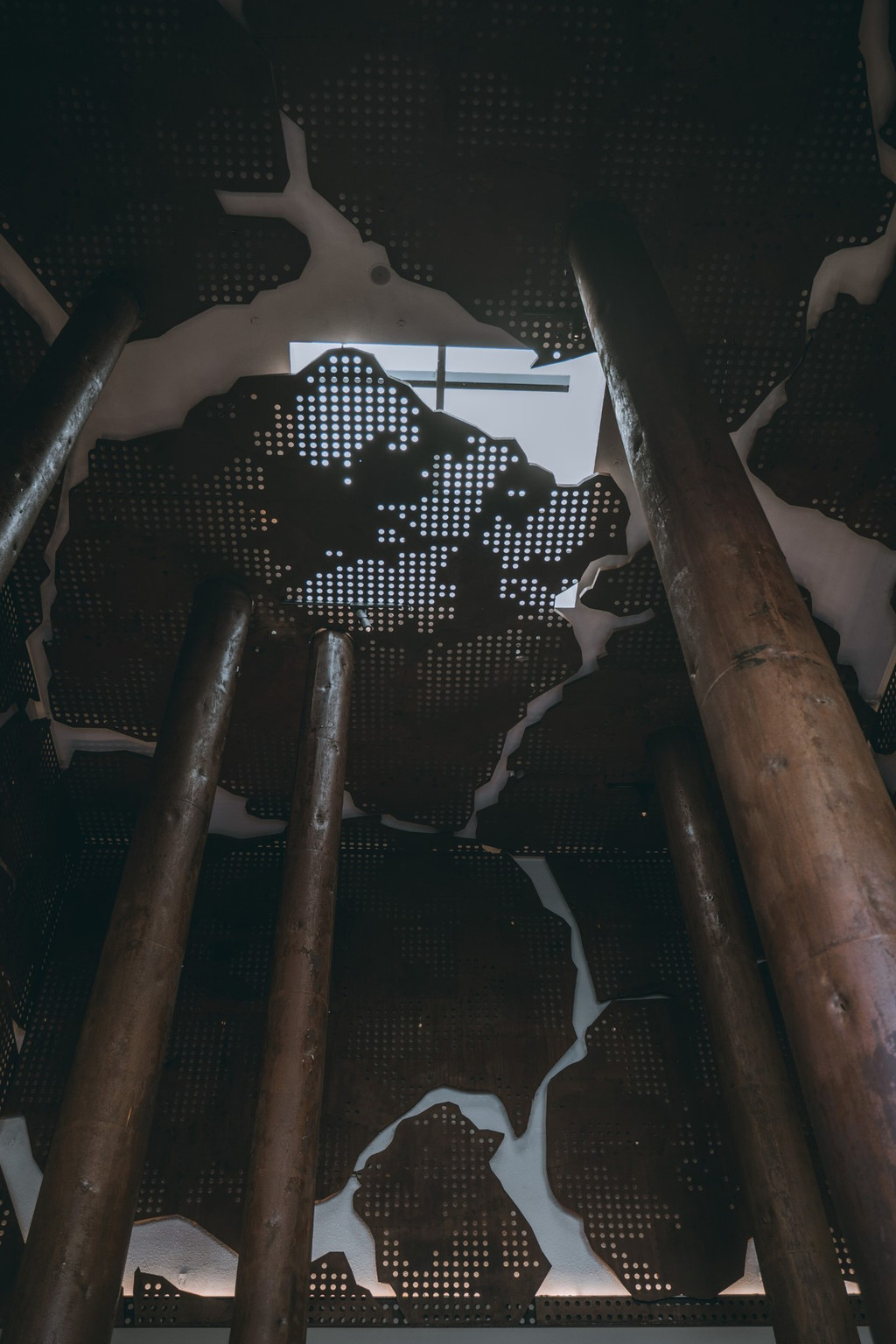 大堂里的白桦树来自自然倒塌、电梯里的背景来自铁道枕木