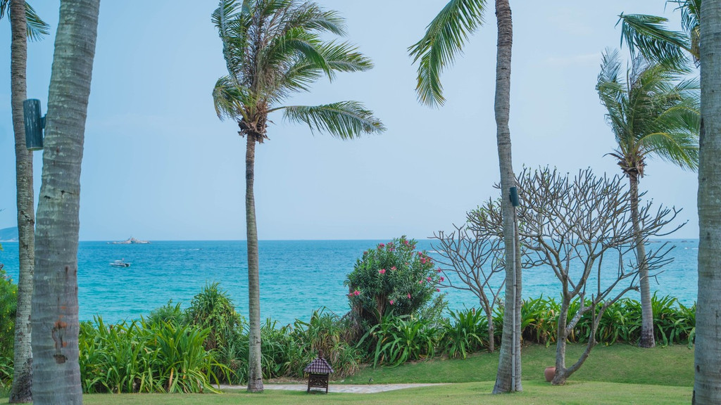 这里是国际一流避寒和休闲度假胜地 临海 的一侧是热带植物园林,另一侧是休闲度假区。