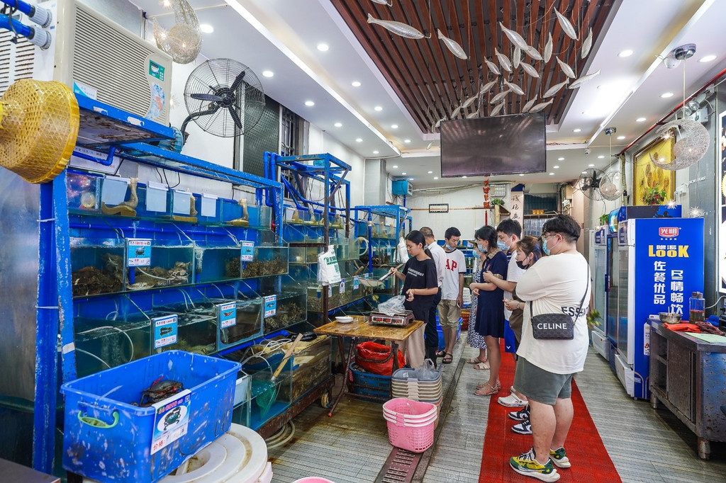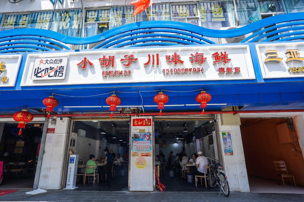 就在街口,我们选了一家某评上口碑还不错的老店“小胡子川味海鲜”。