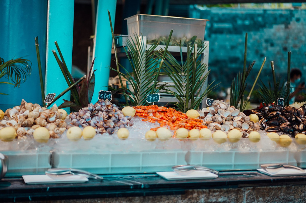 泳池边就是酒店的海鲜烧烤自助餐厅,