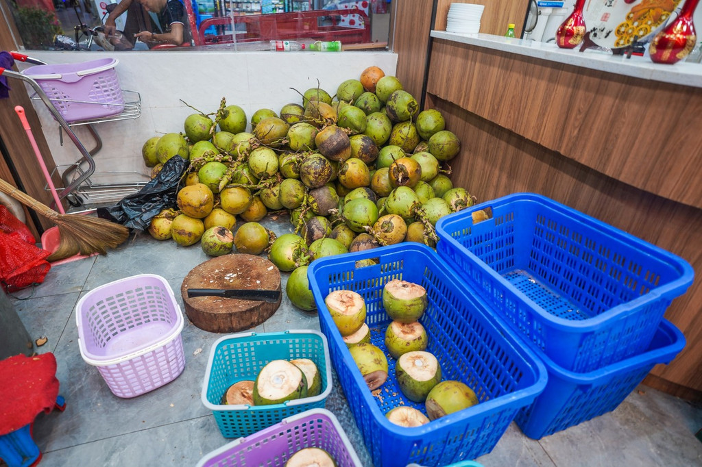 制作椰子鸡的椰子都是现做现砍, 食材看起来就非常新鲜,个个都是又大又饱满。