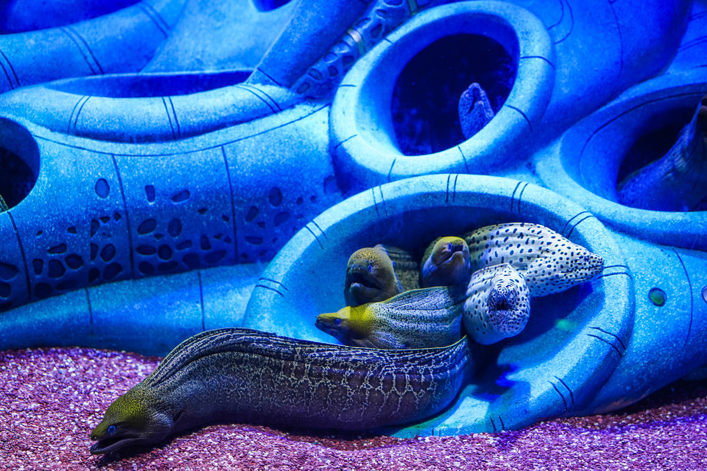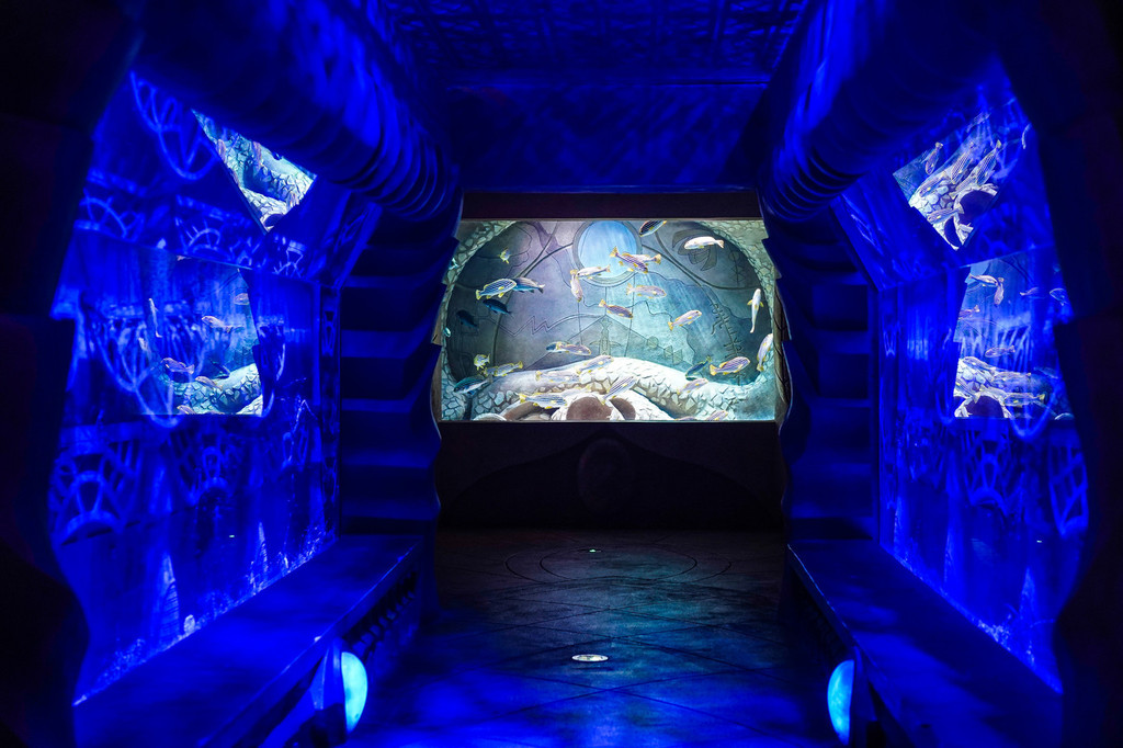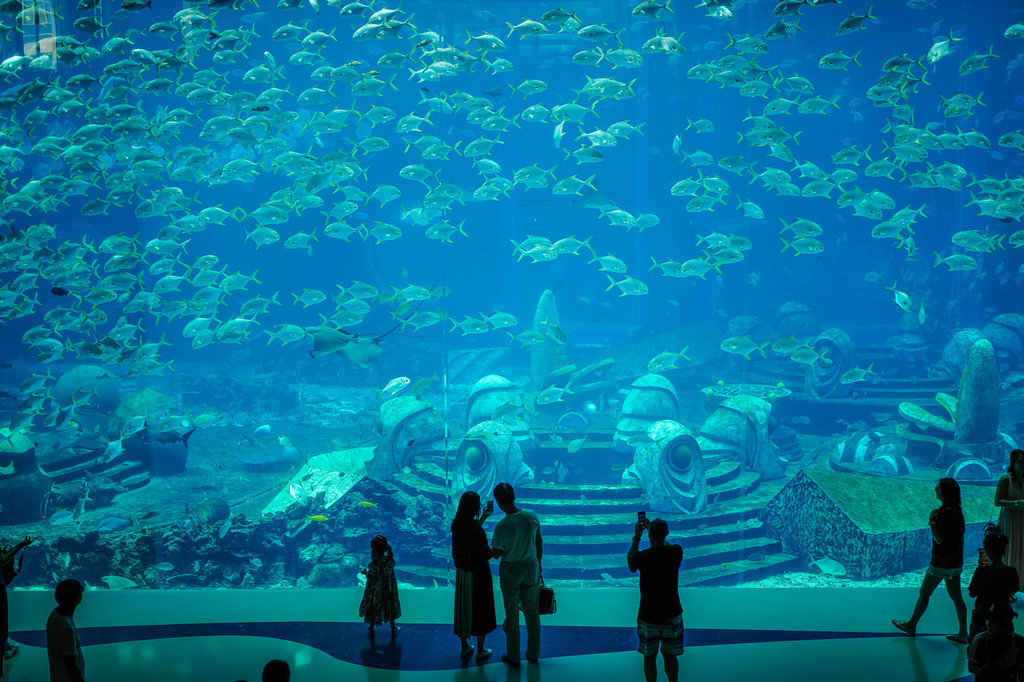 在这个消失的古城里,30个大小各异的互动展示池汇集了超过280种的8600多尾海洋生物。