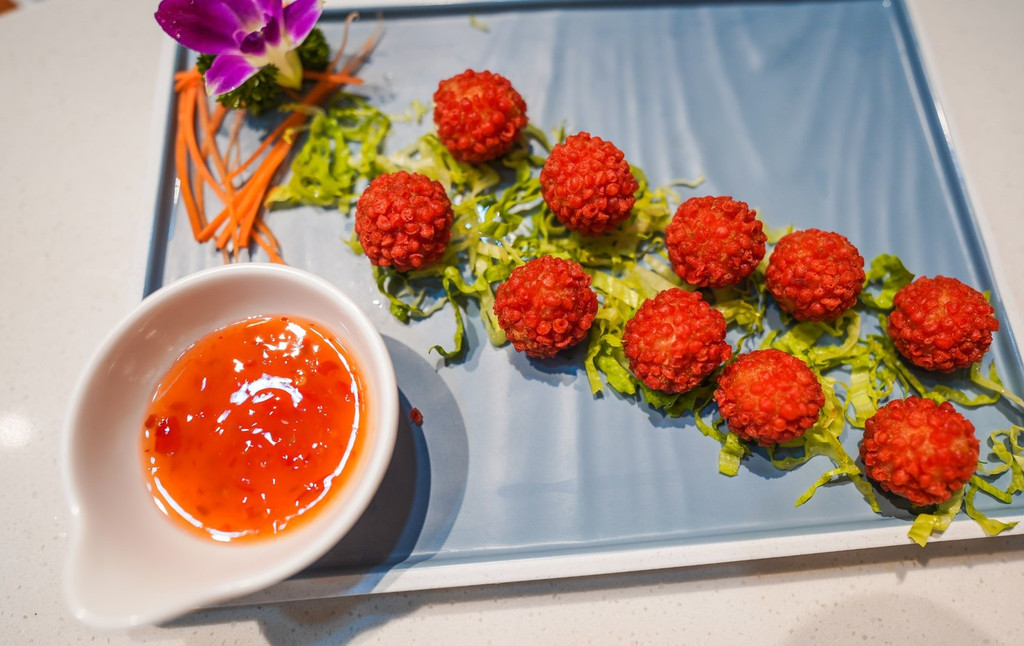 创意十足的一道菜,把虾做成了荔枝的形状,即好看,又美味。