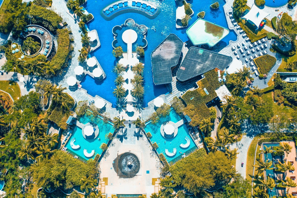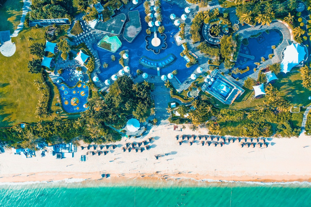 之前就在网上看到 三亚 酒店的“C"字型泳池照片,原来是在亚龙湾的美高梅,我这次也是来了用无人机航拍才发现的。这个角度,也只有航拍才能看见!