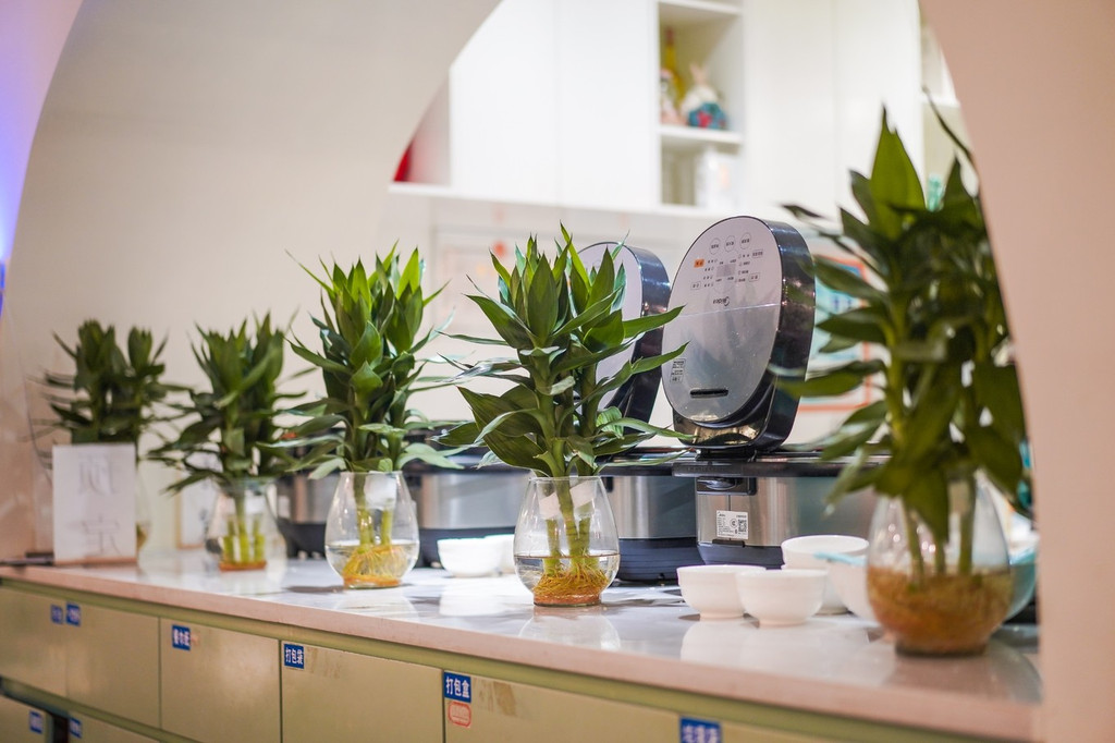 随处可见的绿植,让整个餐厅都生机勃勃。