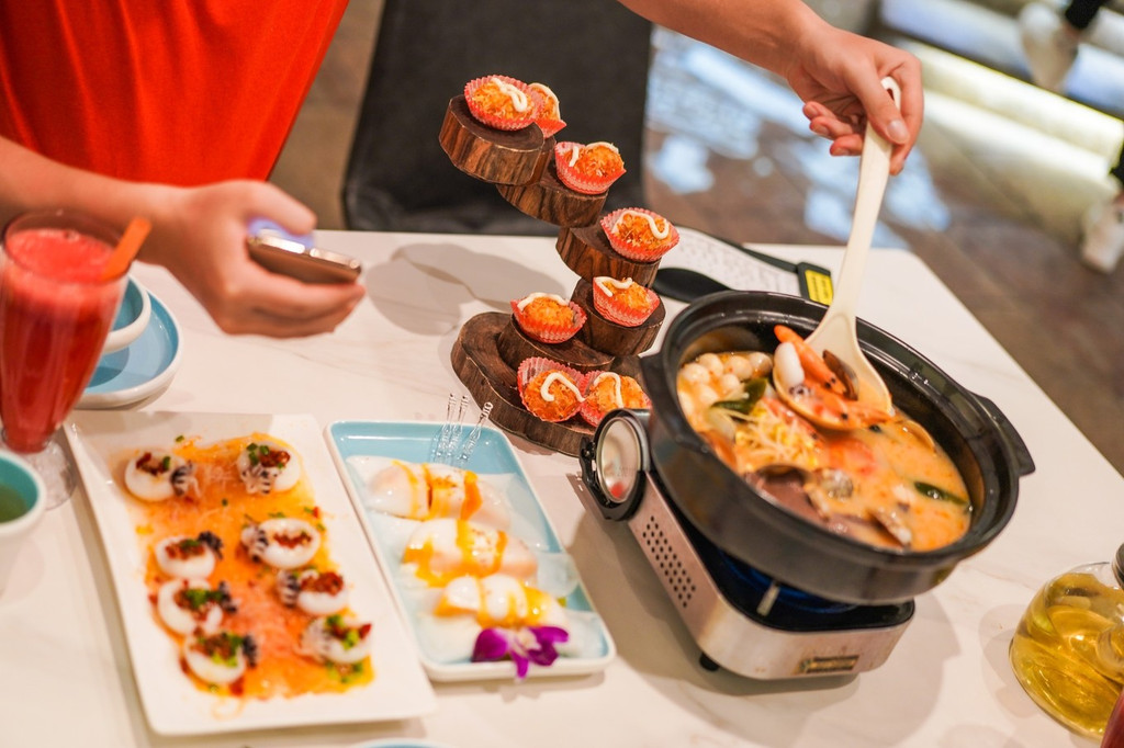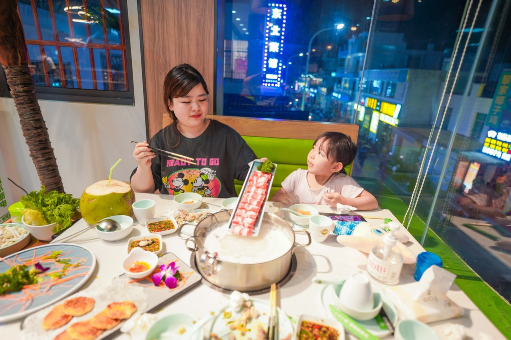 服务员热情的过来帮我们把椰奶倒入锅中,先熬制锅底。