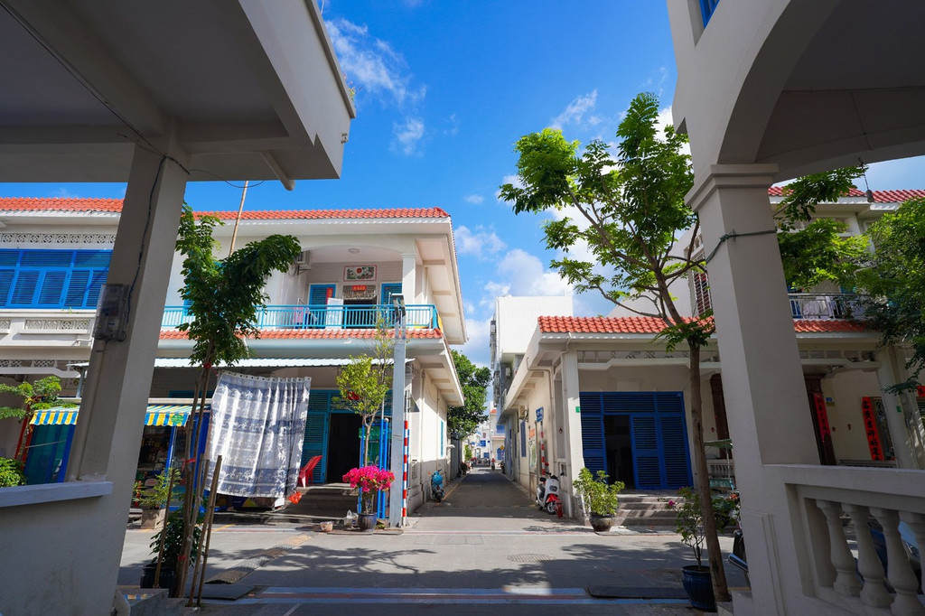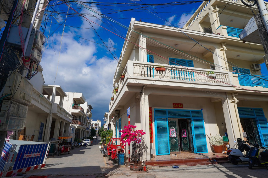 这里被称为 三亚 的 圣托里尼 ,因为到处都是白色的房子和蓝色的窗户,街道上都是这种蓝白风格的建筑,所以很容易拍出好看的照片。