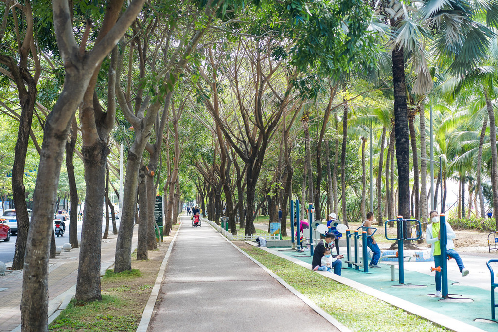 毗邻着 三亚 闹市区,一条椰梦长廊整齐分布。