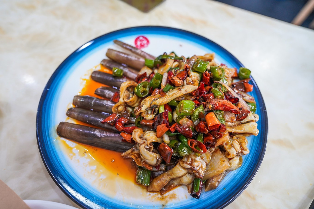 这边的海鲜都比较流行川味的烹饪方法,很多的海鲜都能做成香辣味的,非常符合我们的口味,这个蛏子也强烈建议做香辣味的,味 道真 的很棒,肉也多。