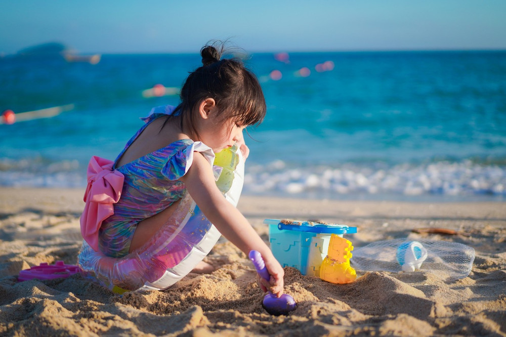 沙滩上有卖挖沙工具的,我们就买了一套给孩子玩,这个年纪的小孩,一堆沙子都能轻松的玩半天。