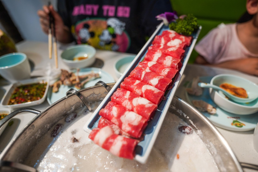 火锅必点菜品,切的非常薄,入锅涮几下就能吃了。