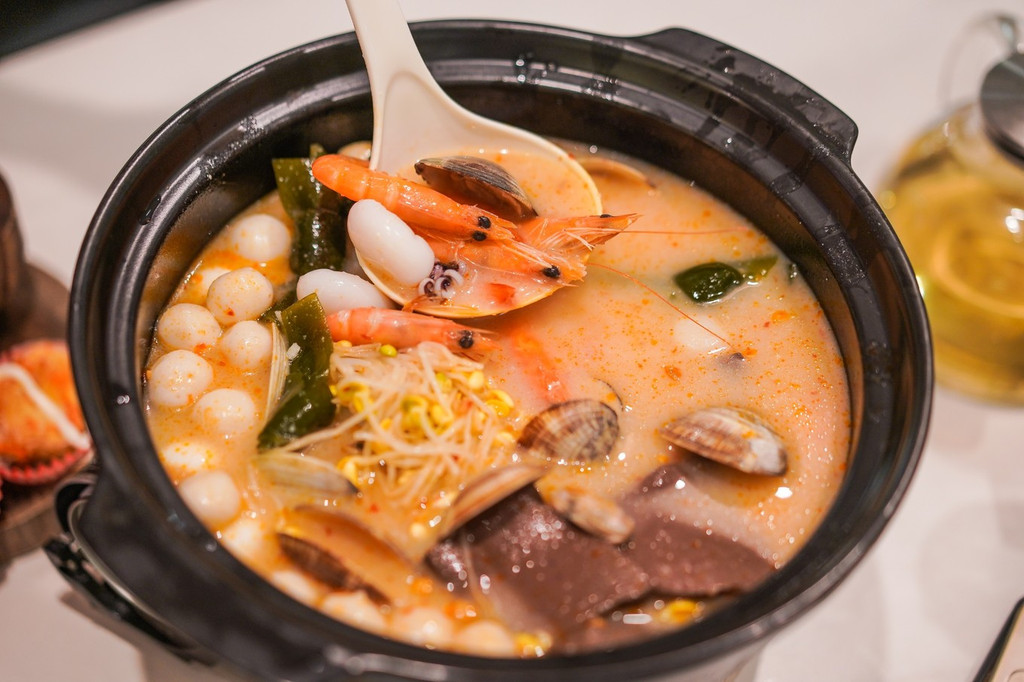 里面的东西也很丰富,有青口,虾,鱼丸、鹌鹑蛋、鸭血、豆芽等。