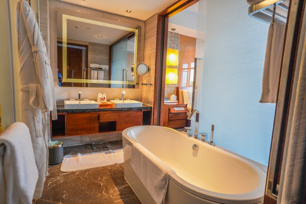 卫生间的面积也很大,从房间的装饰可以看的出来,美高梅的保养做的算亚龙湾酒店里比较好的。