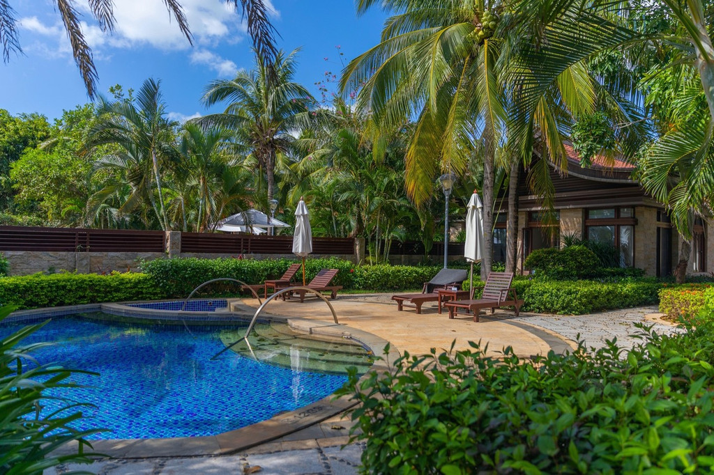 瑞吉 临海 泳池别墅带有私人的小院,单独的泳池,四周椰树环绕,不远处就是大海,游泳的同时也能欣赏到超棒的一线海景。