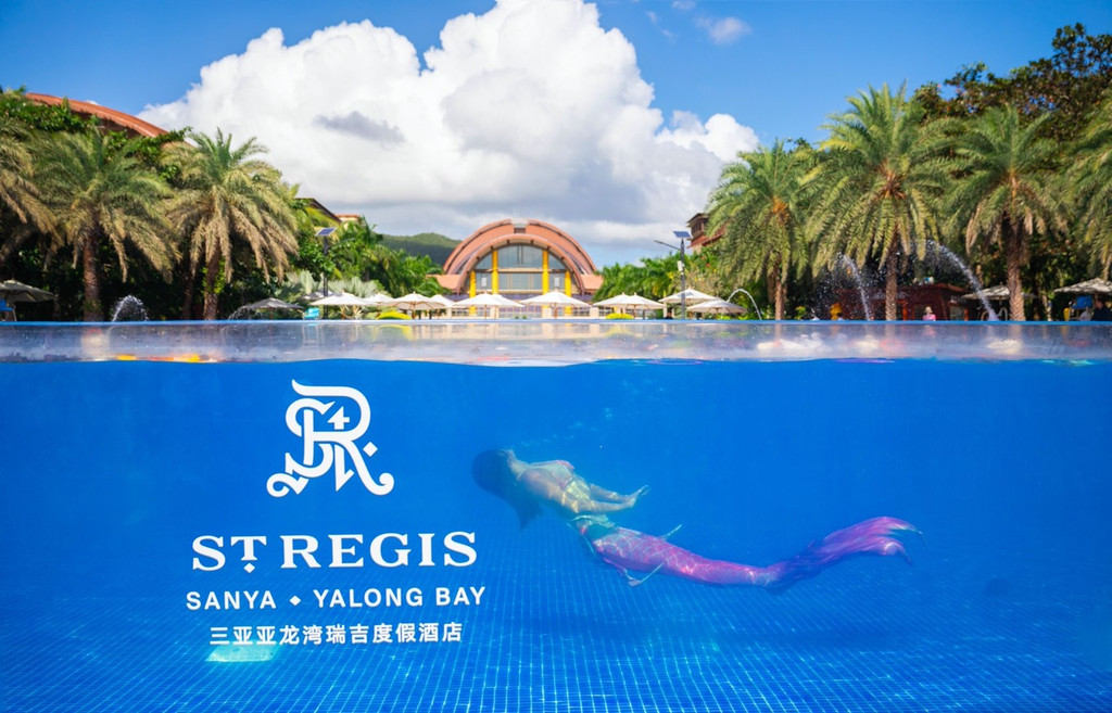 酒店中央的恒温透明泳池,除了可以自己拍美照打卡,每天还有四场漂亮的美人鱼表演,都是外籍美女,千万不要错过。
