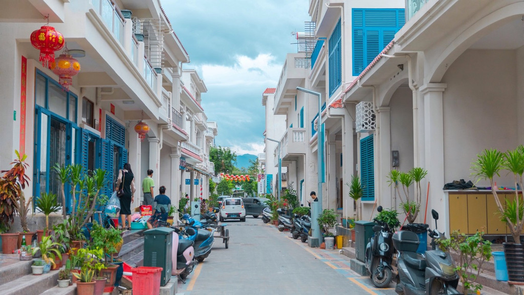 天涯镇位于 三亚 市西部,拥有风光旖旎的红塘、三美两大海湾,走进这里的街巷,有种走在 圣托里尼的错觉,因此,这个蓝白小镇也被游客称为: 三亚 版“ 圣托里尼 ”。