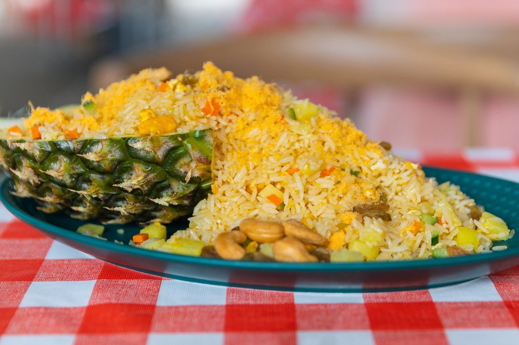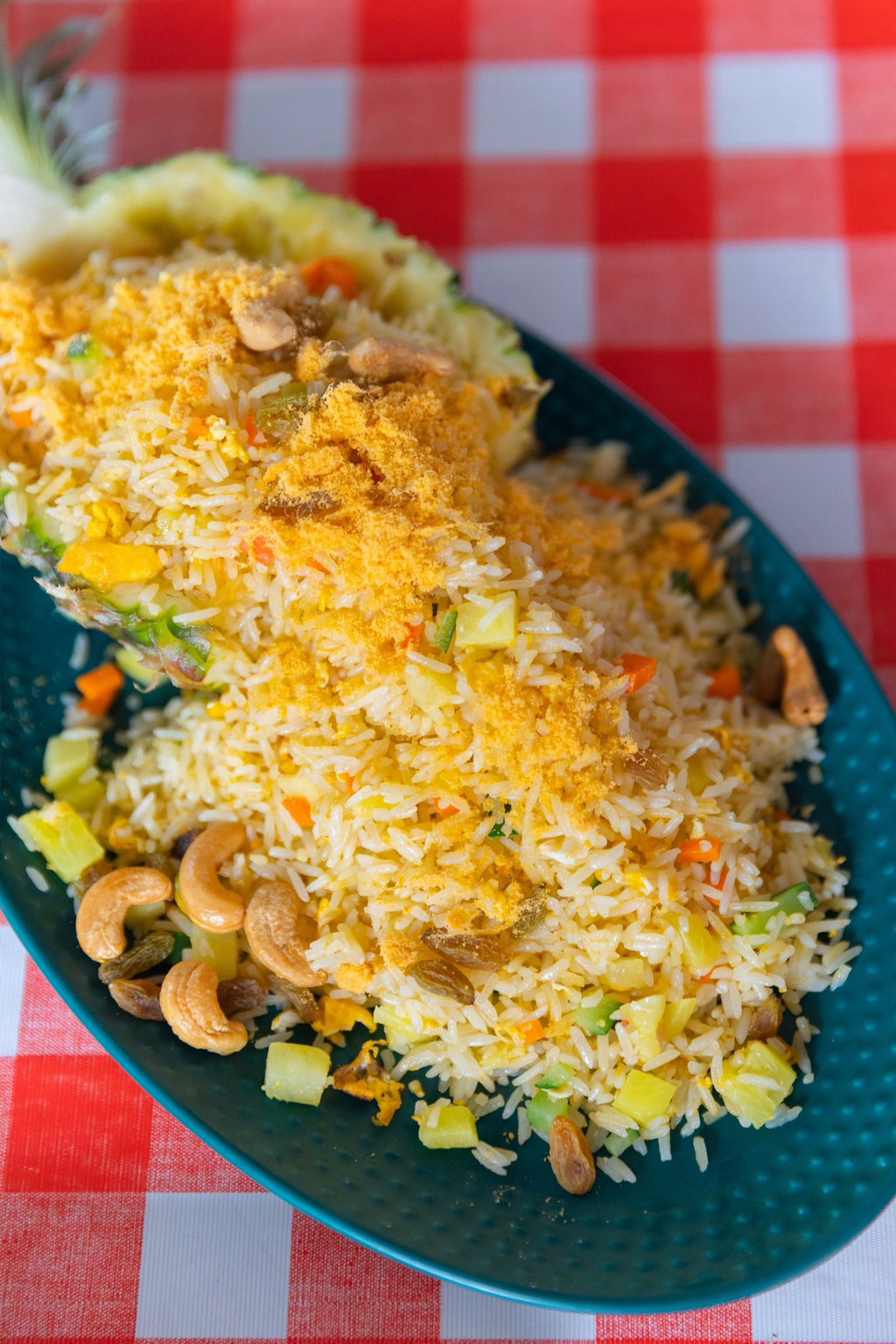 主食推荐菠萝炒饭,这家真的超级良心,菠萝炒饭 里加 了腰果,肉松,葡萄干等等,料相当足,是零差评的一道主食了。