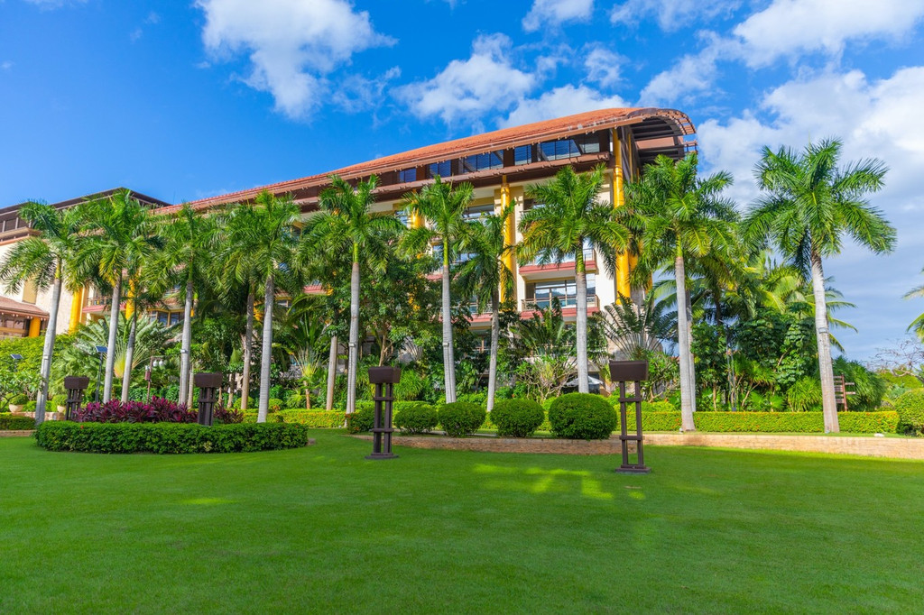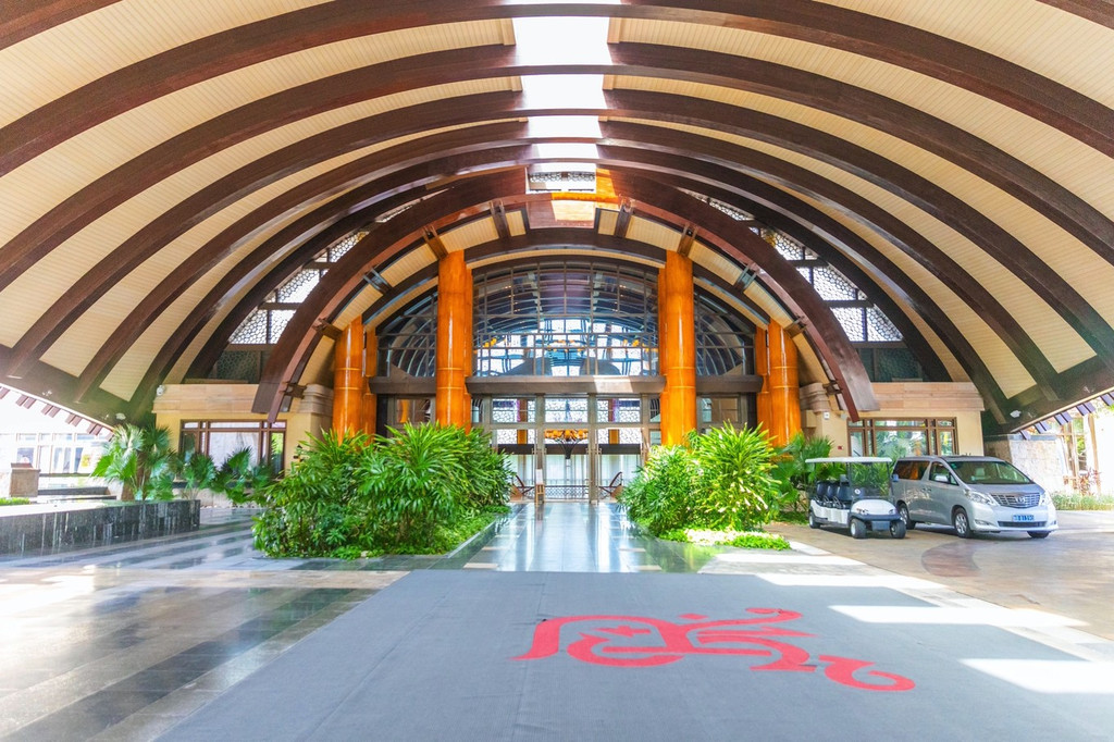以拱型的酒店大堂为中心,整个度假酒店从大堂向外延展,由客房组成“龙”的双翼。酒店共有396间客房,其中37间精致套房,28间豪华海边泳池别墅。
