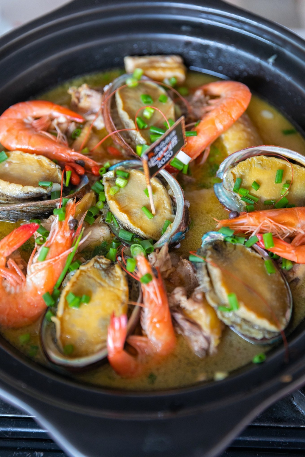 另外,鲍鱼 文昌 鸡煲也是必点的,这是 文昌 鸡高汤熬制的,里面的料也很足,有鲍鱼,虾等等,汤很入味,属于吃完还想吃系列,强推。