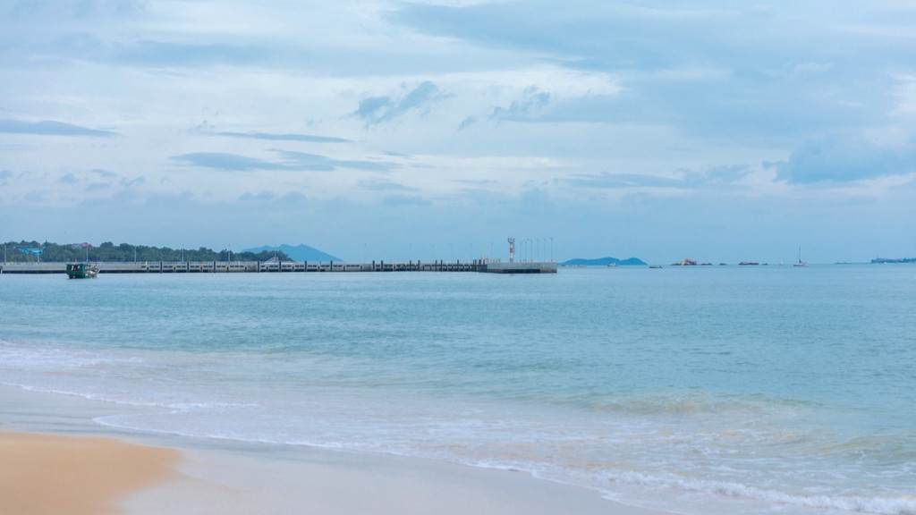 慢慢走着,就到了街道的尽头,一眼便看到了大海。清澈淡蓝的海水,冲刷着干净柔软的 白沙 ,海风轻拂,满满的惬意。