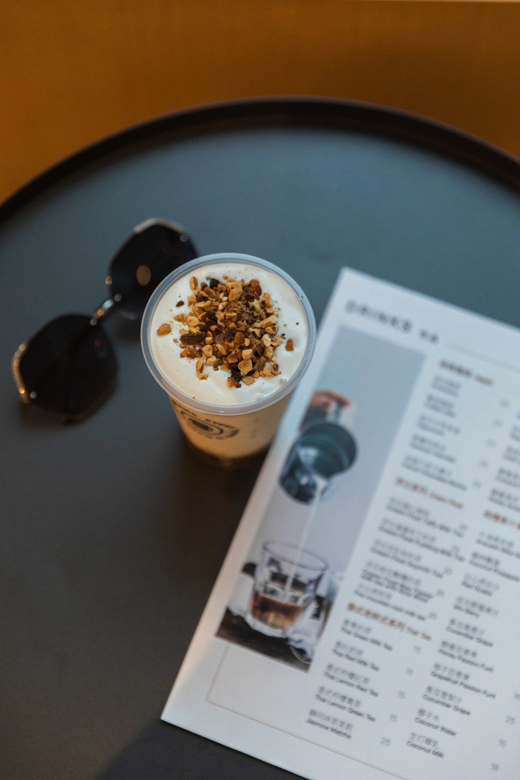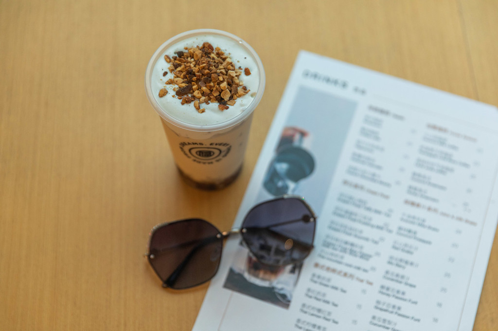 果然,没有让我失望,小哥哥做的饮品相当好喝,真的不输其它的网红店,我说我不能喝咖啡,就给我一杯纯奶调制的饮品,上面还撒了榛果,甜而不腻。