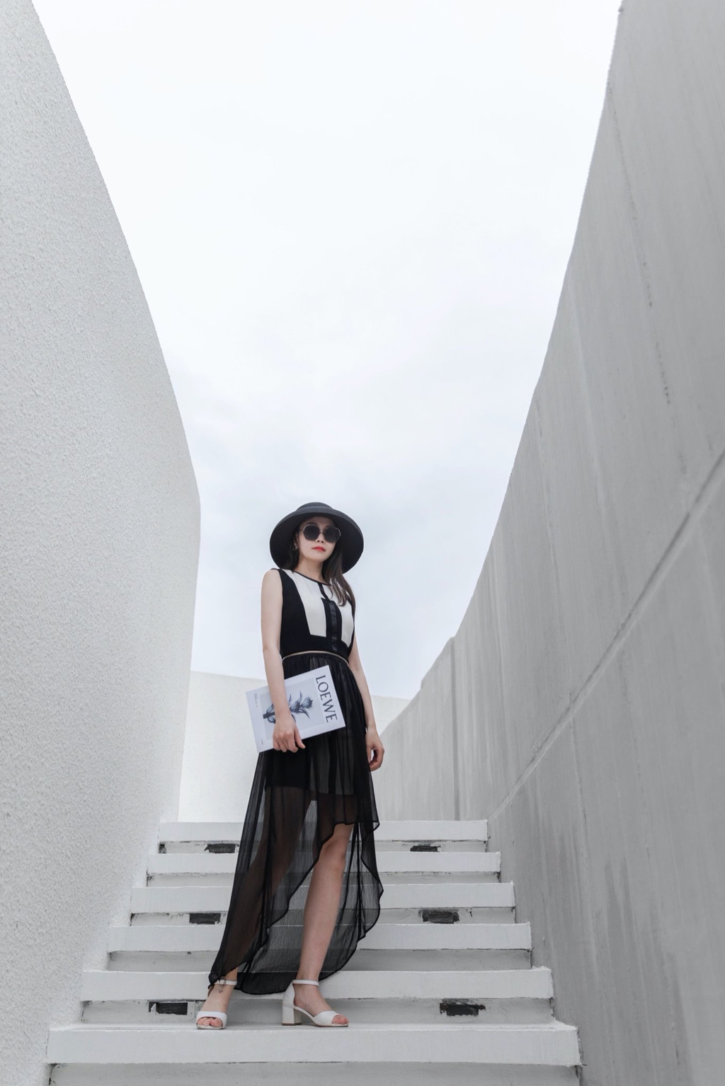 我穿的黑白色裙子,搭配了个黑色的礼帽,相机用的是佳能单反,取景角度好看的都发出来了,自己get吧!