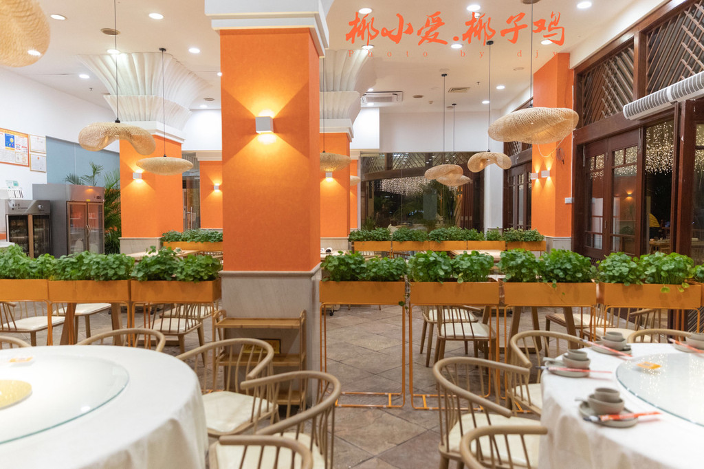 椰小爱椰子鸡在 三亚 湾市区,交通方便,环境也是相当好。整个店装潢很小清新,橙色的主色调,是我喜欢的。