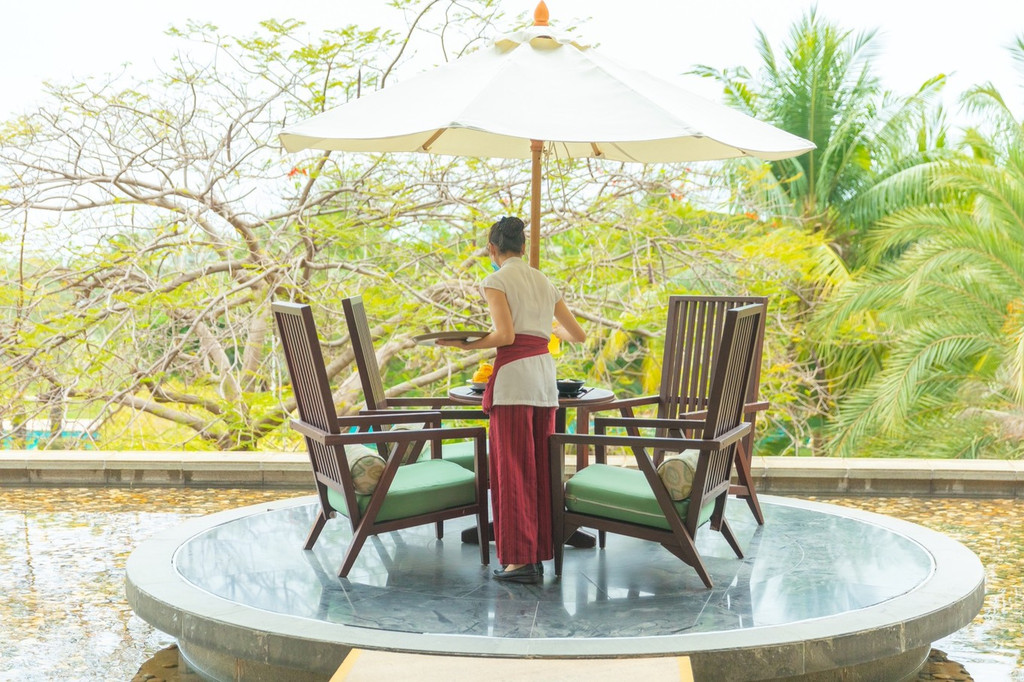 清晨醒来,漫步在热带雨林郁郁葱葱的林荫树下,穿行在香气氤氲微风轻袭的花园中,选个喜欢的地方坐下,享受身、心、灵的平衡与放松,开启崭新的一天。