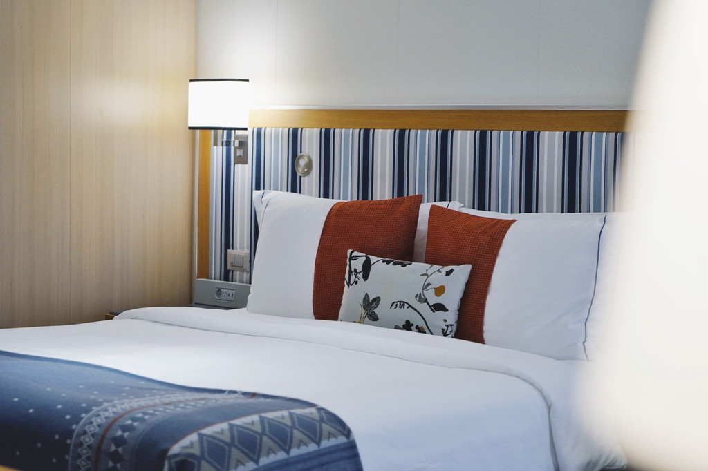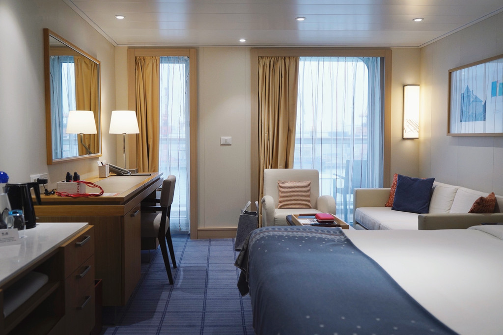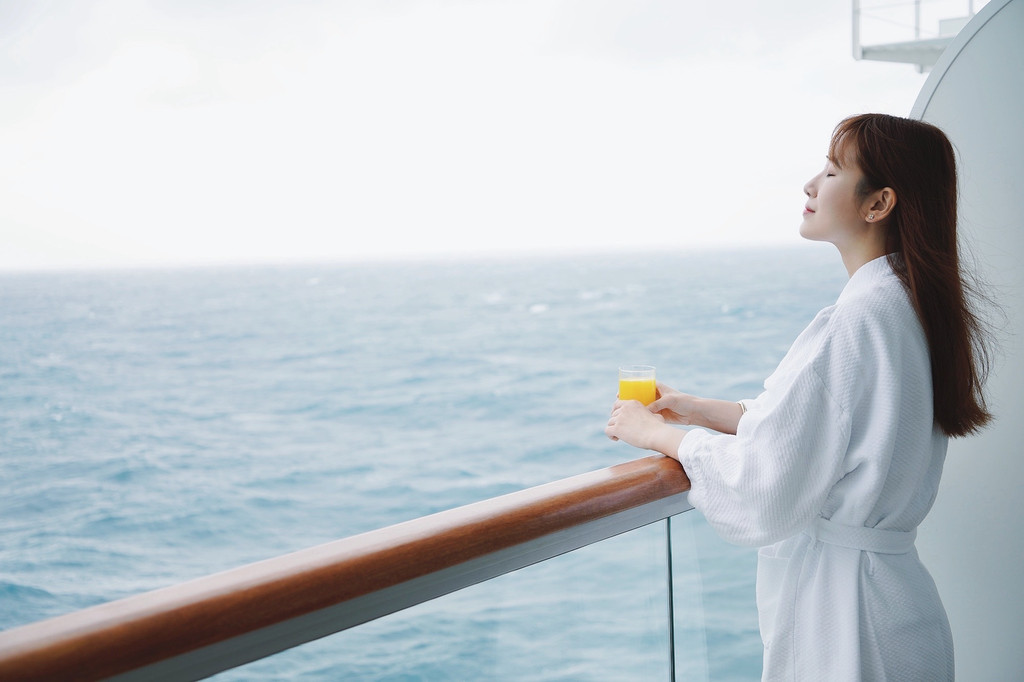和那些动辄几千人的大邮轮相比,招商维京伊敦号则是“小而美”的代表,客房典雅又不失温馨,设施都很高级,就跟住五星级酒店一样,所有客房都有阳台,每时每刻都可以享受无边海景。