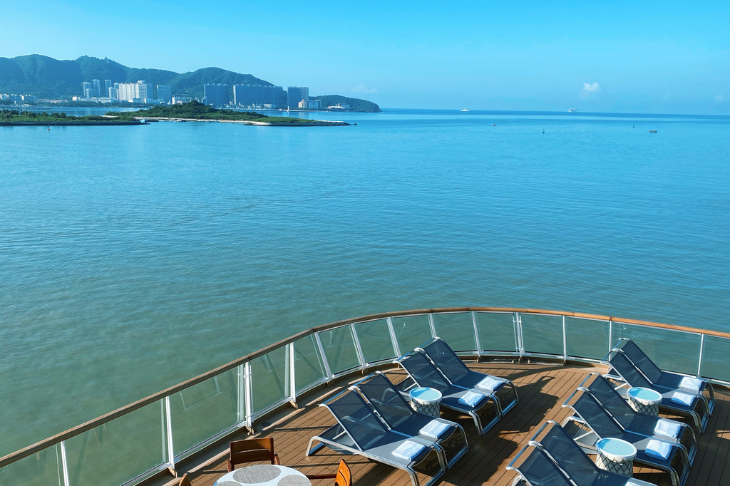 最受大家欢迎的自然是日光甲板,天气好的时候大家都喜欢在甲板上拍照,二十几度的天气在甲板上散散步实在太舒服了!