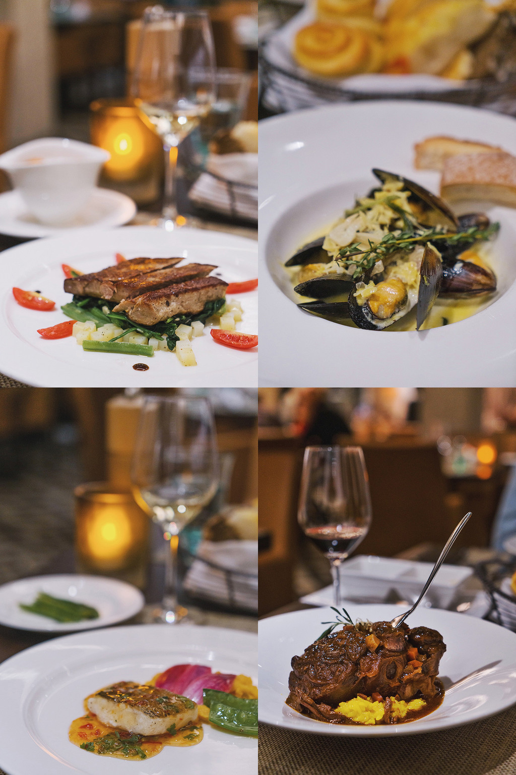 意大利餐厅不仅选则品类非常多,还提供当日特色鱼和意面。前菜推荐一定要试下“海鲈鱼生鱼片”、“帕尔马火腿配蜜瓜”、“海鲜奶油汁烩青口贝”和“金枪鱼酱小牛肉”这几道,主菜推荐“烩小牛膝”和“意式小牛排”,意大利餐厅的菜品非常合我们的口味,我们一共去了两次哈哈哈。