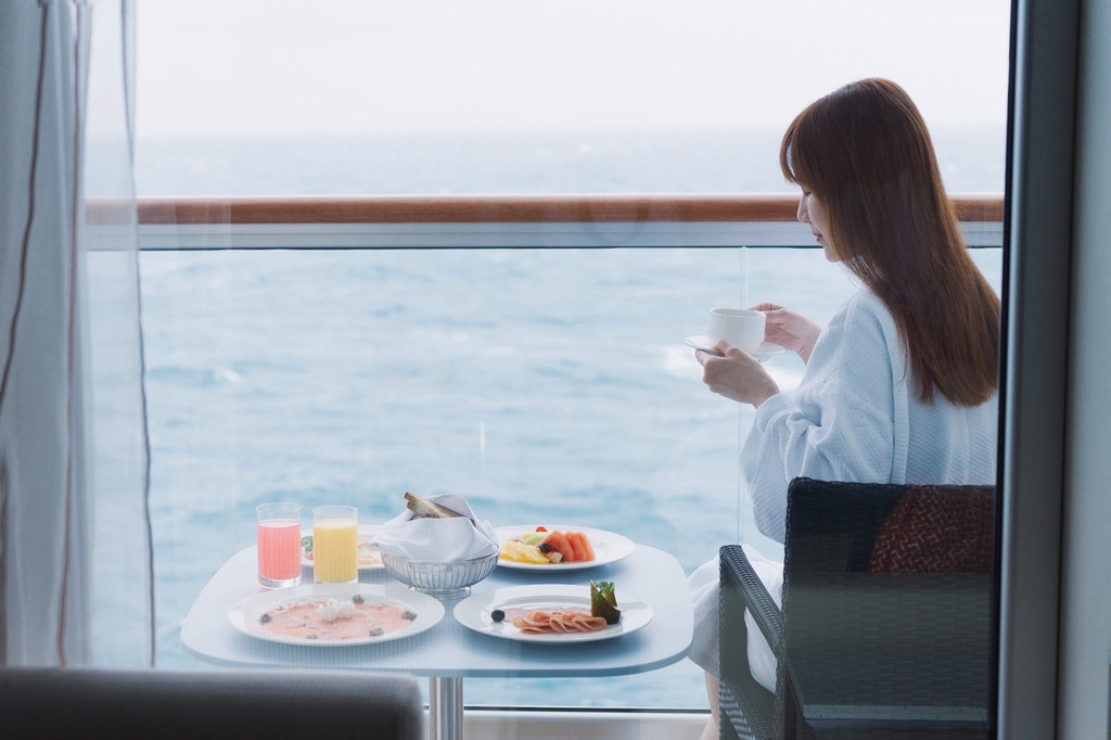 航海日睡到自然醒,可以在阳台吃个惬意的海景早餐,房间里的mini bar和24小时送餐服务都是不需要额外付费的哦~~
