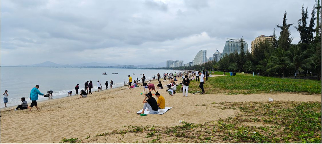 今年三亚湾的人还真多,其实每年冬天这里的人都不少,今年特殊人就更多了。整个三亚湾远远望去人群显得密密麻麻的,戴口罩的人并不是很多。整个下午孩子们都在玩沙滩,或者在海边抓寄居蟹,大海边仿佛永远都是孩子们童年最快乐的地方!晚饭来了一顿海鲜,饭后沿着海边散步回酒店,夜晚的三亚湾吹着凉凉的海风,踩着柔软的沙滩,听着阵阵的海浪声,孩子们在沙滩上追逐嬉戏,犹然感觉到一种幸福感!移步到海边人行道,和白天不同,椰树在夜晚路灯的照耀下别有一番特别的感觉,伴随着孩子们快乐的奔跑和笑声,趁机录下的视频是他们长大后美好的回忆!