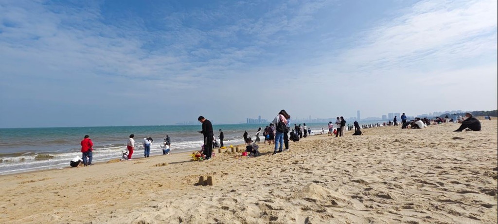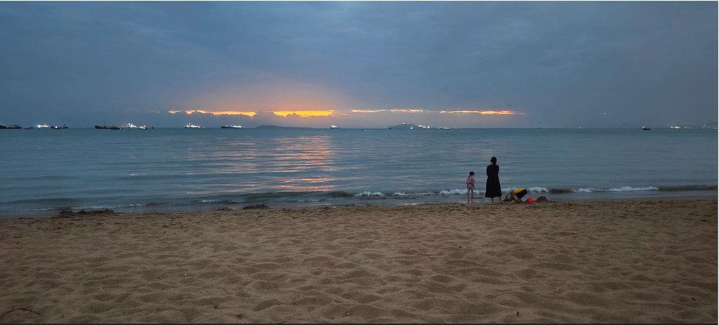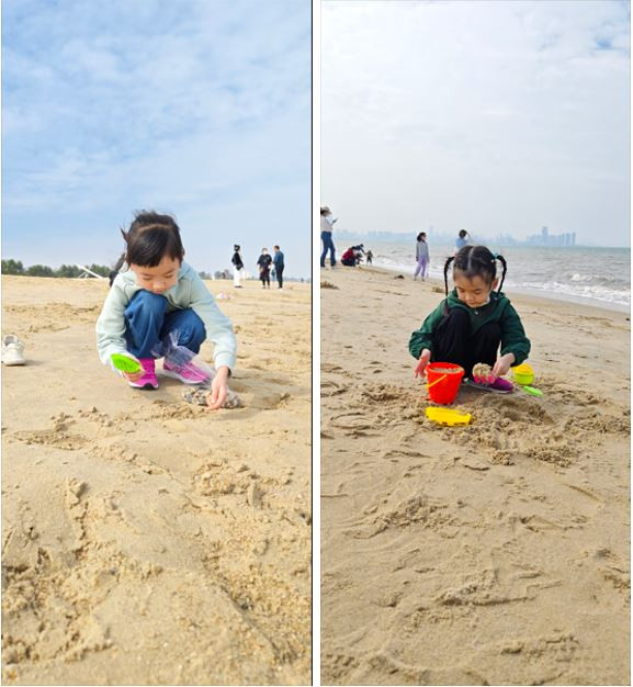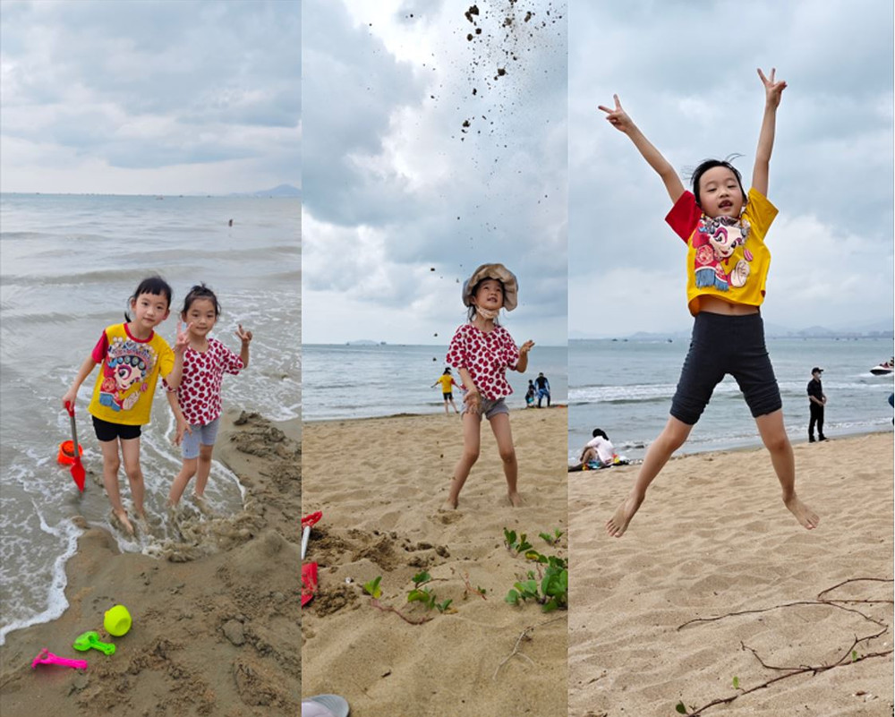 到达第一站海口后,天气还比较凉,有深秋的感觉。我们入住了鑫源温泉酒店,介绍说这里洗浴用水全是温泉水引入,加之位置不错,而且酒店是机场大巴的起/终点,所以我们选择了该酒店。酒店服务不错,早餐也不错。这是第一次来海口,海口是海南的省会城市,感觉城市发展比较于成都还是有些差距。但蓝天白云椰树大海,海口独有的南国风光是成都没有的。因为是带着小孩的环岛游,为避免奔波劳累,所以每个城市的行程安排尽量简单有意义。海口有不少亲子游的景点,如果不是自驾或者打车,公交车也是很方便的,而且发现海口公交车车上好像人很少,是因为最近海口“阳”人很多还是别的原因?车上人少更方便看看窗外海口这座城市的样貌,海口没有很多高楼大厦,但街道两侧的椰子树告诉你,这是一座美丽的南国城市!我们选择了假日海滩和骑楼老街,顺带看了钟楼。海口停留的两天天气不佳,阴雨天或者多云,偶尔有太阳,有太阳的间隙拍到了假日海滩蓝绿色的大海,还是很漂亮。海面远处有很多白色帆船,帆影点点,衬托着背后的海口城市建筑,如果天气晴好想必应该是非常好的景色!小朋友喜欢沙滩,只要不饿他们可以玩一整天沙子,认真的样子比写作业专注多了,这时趁机拍了很多他们海滩玩耍的照片。假日海滩紧挨着西秀海滩,整个海岸线很长,人不算多,风很大天气凉,所以我们只呆了约两个小时就转去了骑楼老街,孩子们自然是不情愿,因为两个小时太短!两个小家伙在海滩捡了很多贝壳和小石头,离开时算是满载而归了!
