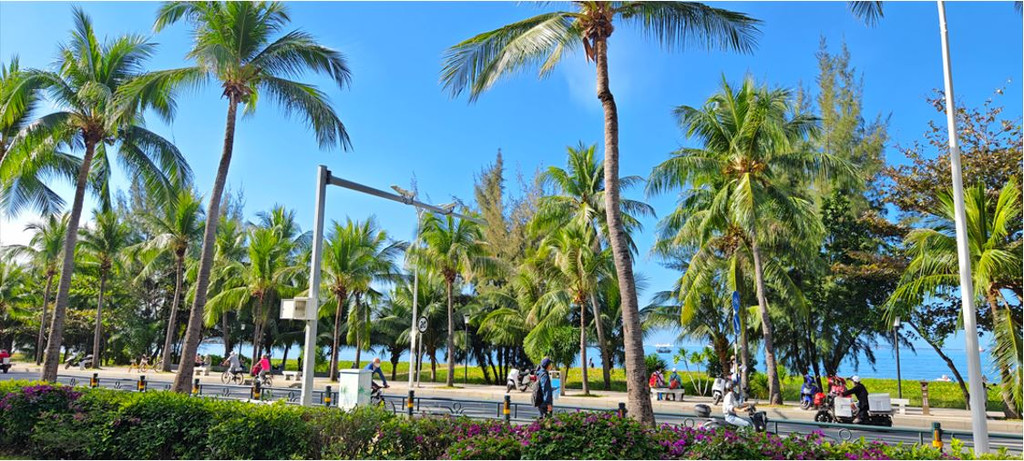 又到了环岛游的下一站行程了,我们踏上了东方到三亚的高铁,一路上天气还不错,奔驰的高铁窗外有椰树,香蕉树,水稻,玉米,小山,构成了海南一道独特的风景线,偶尔还能看到高铁沿着大海快速行进。