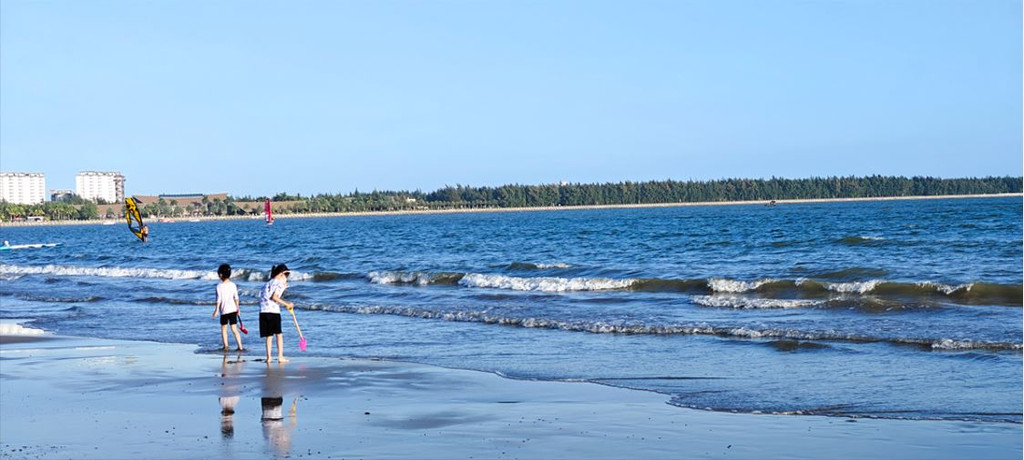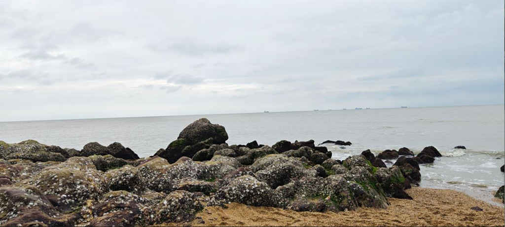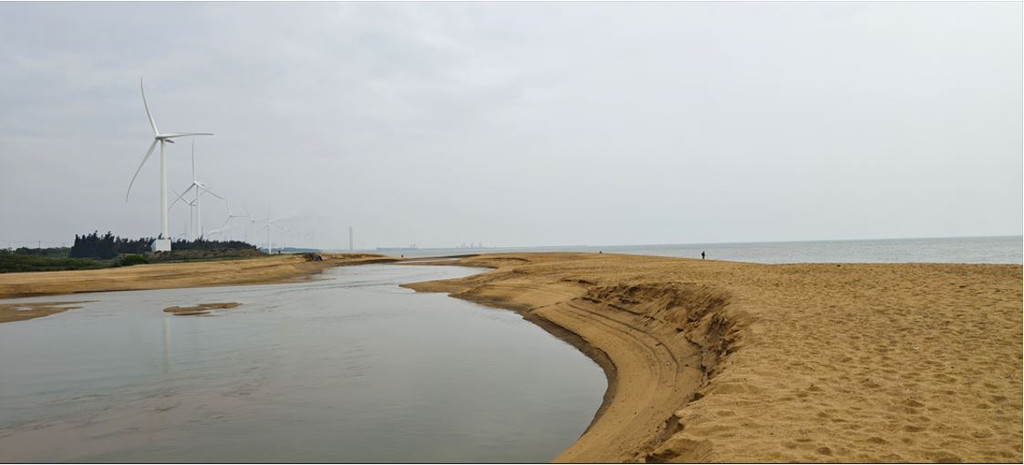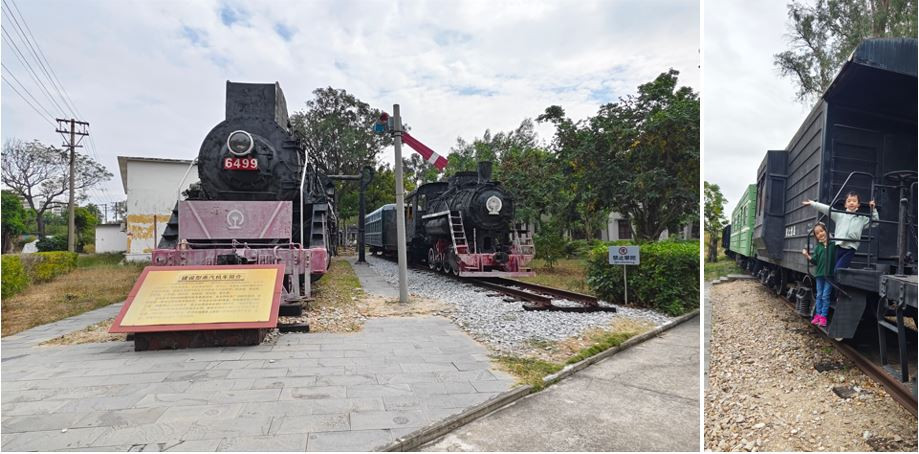 东方的第二天带着小孩参观了市内的海南铁路博物馆,馆内有几列老旧的火车,有关于这些火车历史和抗战意义的介绍,小孩可以爬上爬下玩耍的,带着小孩随便看看就离开了。时间还早,铁路博物馆距离鱼鳞洲很近,应孩子们要求又去了一次鱼鳞洲。这次我们顺着风车的方向行进,沿着一排风车的脚下有一条河,河滩很宽,远远望去猜想这条河肯定是流入大海的。果不其然,没走多远就到了河的尽头,当天天气阴沉,海浪有点大,河水刚流进大海就被海浪拍打过来。遗憾的是这个位置地势很平,如果站在比较高的位置看百川东到海的景象,想必会更加壮观!但不管怎样,生平第一次和孩子看到大河入海的景象,对大人的震撼和对小孩的教育意义还是挺大的!