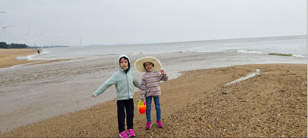 到达东方后天气多云,阳光椰树鲜花仿佛都在欢迎我们,又是到处拍照。我们住的柏曼酒店距离高铁站很近,又在万达广场旁边,所以吃饭出行算是很方便。柏曼酒店比较新,早餐勉勉强强吧。酒店选择上我们都做了一些功课,要评价好的,位置方便的,早餐也不错的,毕竟带着小朋友想给他们更好的体验!东方算是个小城市,但这里的消费一点也不算便宜!这座西海岸的小城给人第一感觉就是喜欢,整洁干净的街道,人流也不多,显得这座城市很有序!这里最好的景点应该是鱼鳞洲。东方是一座滨海城市,整个海南岛应该只有海口三亚东方算真正的滨海城市,所以距离大海边比较近。到达东方的第一天下午,我们就带着小朋友去了鱼鳞洲风景区,这是一个免费的景区,海边风有点大,天气很凉又是阴天,所以遗憾没看到蓝色的大海。但这里有孩子们喜欢的灯塔和有童话般意义的风车,海边还有很多大石头可以爬上去,就像三亚的天涯海角和蜈支洲岛。鱼鳞洲海边的石头上全是贝壳,而且贝壳完全是“镶嵌”进石头的,看起来真得很像鱼鳞!这大概就是鱼鳞洲名字的由来?爬上海边的大石头,头顶就是鱼鳞洲灯塔,如果天气晴好,这里拍照应该算是很棒的打卡点了!站在距离大海最近的石头上,海浪拍打着石头激起无数浪花,再对着大海远处大喊几声:“喂。。。”,算是对大海的问好,也是对大海的眷恋!风大浪大,几乎只有距离很近的人才能听到你的喊声,他们向你投来的目光里有理解也有几分羡慕!