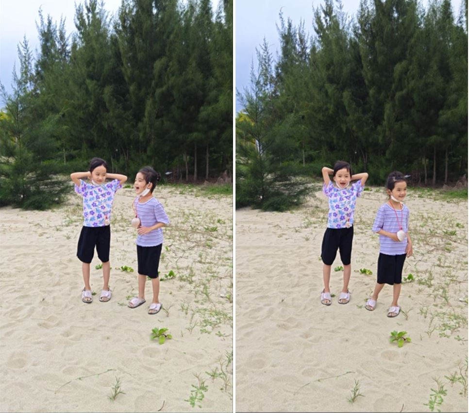 换上短袖短裤,孩子们迫不及待的要去沙滩玩,但还是先找个地方吃饭吧。吉祥街团结街我们很熟悉了,特别是靠近吉祥街尽头的东方宫面馆是我们之前经常去的地方,对于喜欢西北风味面食的人,这里算是物美价廉了,就餐环境也不错!吃完饭顺着吉祥街散步去海边,特别留意了一下路边的芒果树,正遗憾咋没看到芒果呢,这时一棵挂满了果实的芒果树就映入眼帘,就像超大葡萄一样,树上的芒果长得一串一串的,趁机让孩子们在树下来一张合影。