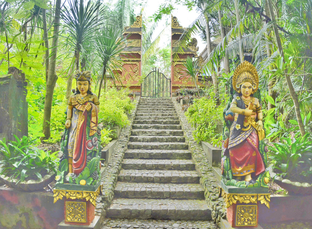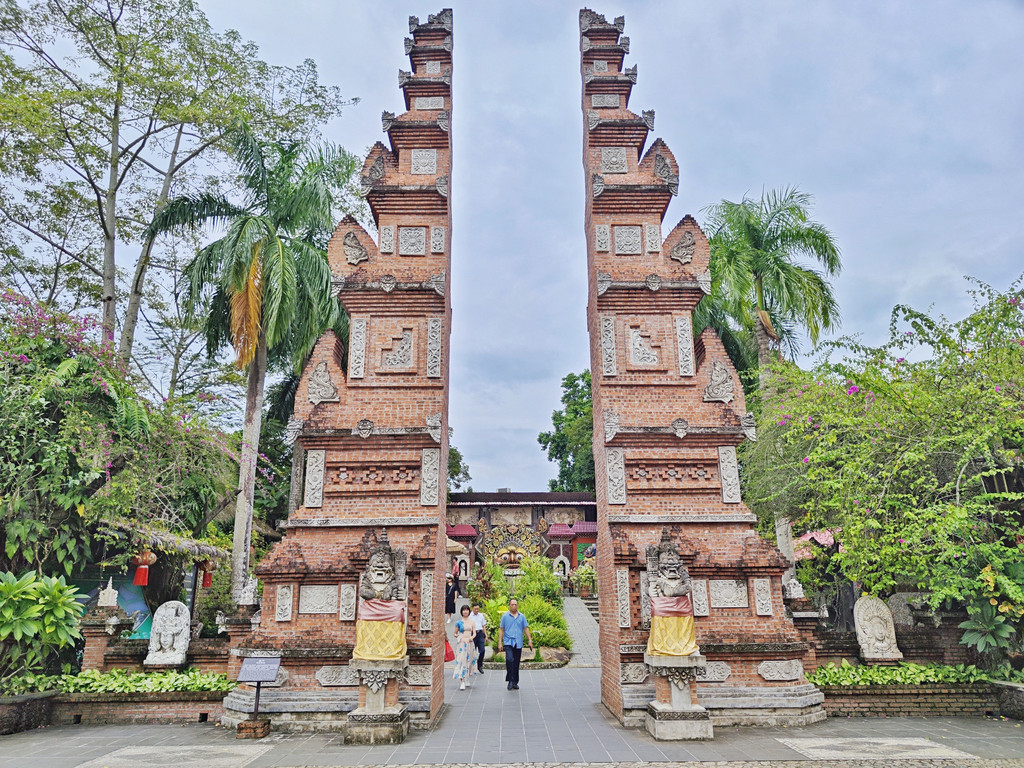 万宁巴厘村是一个以南洋归侨文化为背景的景区,位于海南省万宁市。从海口美兰机场或三亚凤凰机场出发,乘坐高铁或大巴至万宁市,再乘坐出租车或接驳车前往巴厘村。 景点推荐: 通天门:巴厘村的入口处有一座通天门,两旁有两尊神灵,据说是巴厘岛的传说,可以驱邪保平安。 爱神景观:在巴厘村内有一处爱神景观,是游客拍照的好地方。 鸟巢:巴厘村内有一处鸟巢,很适合拍照。 园区内的建筑和雕塑:巴厘村内有许多充满南洋风情的建筑和雕塑,如印尼风格的民居、神庙等,可以感受到浓厚的异域文化氛围。 美食推荐:在巴厘村内有一些当地的特色小吃和餐厅,可以品尝到地道的海南美食和南洋风味。 住宿推荐:在巴厘村周边有一些酒店和民宿供游客选择,可以根据个人喜好和预算进行选择。 注意事项:在旅游期间,请注意保护环境,不乱扔垃圾。同时,尊重当地文化和习俗,不要破坏当地自然景观和文物古迹