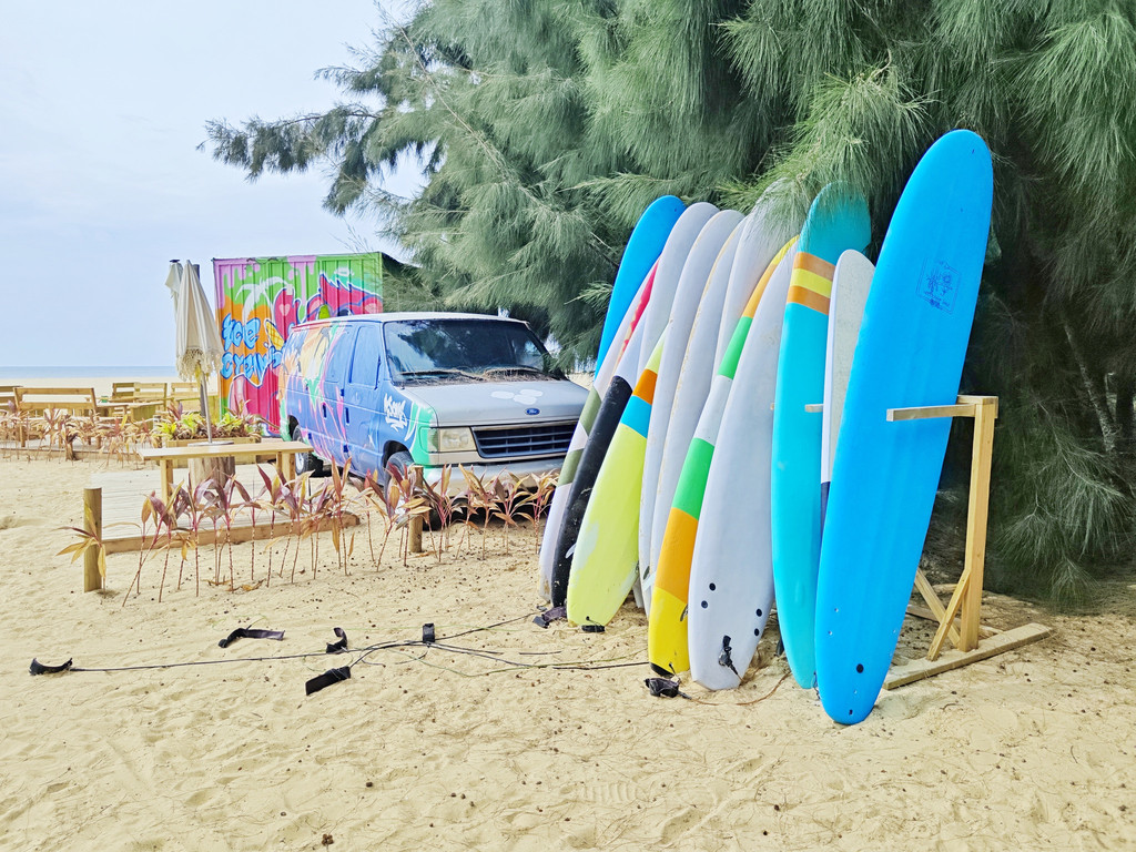 日月湾冲浪:日月湾是冲浪爱好者的天堂,这里有很多冲浪店和冲浪板租赁服务,可以在这里尽情享受冲浪的乐趣。