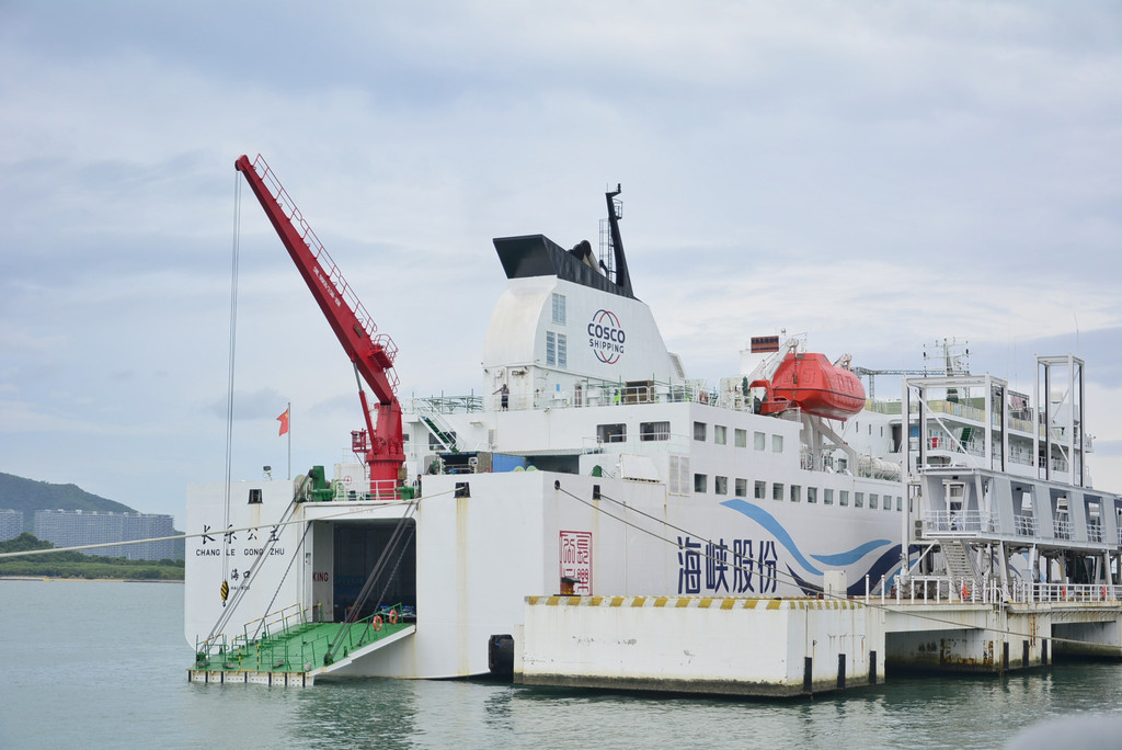其实火车上船,就是把长长的火车分成三五个车箱为一列,分别地进入船仓内,乘客只能在车箱内活动,不能下车到船上观光。只能凭着手机信息和微弱的浮动感觉来辨别是否开船和到达