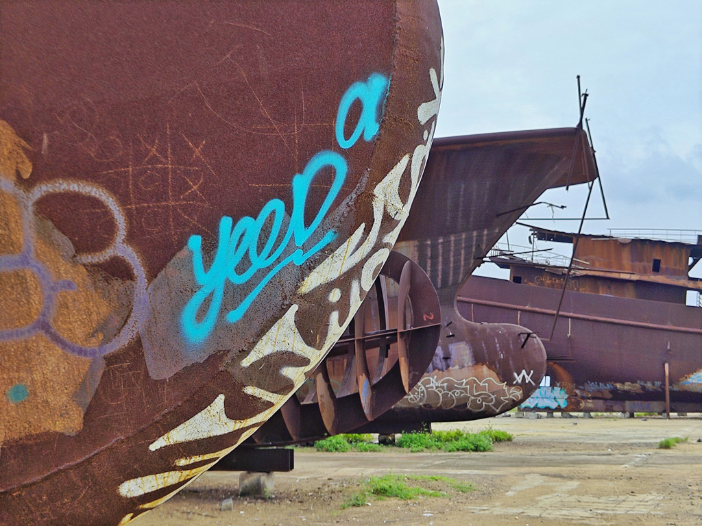 厂内的大门紧锁,可以通过海边一侧的岸边进入,里面有很多专程前来钓鱼的人,船厂已经没有经营,船体也出现了锈迹,游玩过程注意安全,避免攀爬旧船体。在这静静享受钓鱼与大自然的乐趣