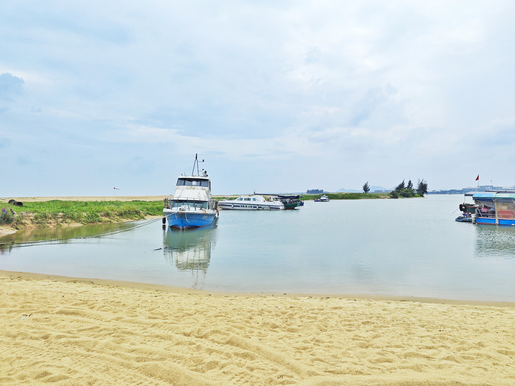 玉带滩:一条自然形成的地形狭长的沙滩半岛,外侧南海烟波浩淼一望无际,内侧万泉河、沙美内海湖光山色,内外相映,构成了一幅奇异的景观。玉带滩全长8.5公里,地形地貌酷似澳大利亚的黄金海岸和墨西哥的坎昆,在亚洲区可谓仅此独有。目前玉带滩只能坐水路上岸,锦江码头、滨海码头、亚洲论坛成立会址码头、亚洲论坛永久会址码头均有船可往。