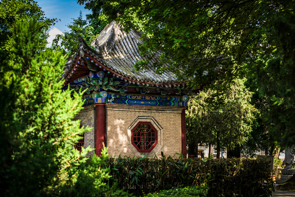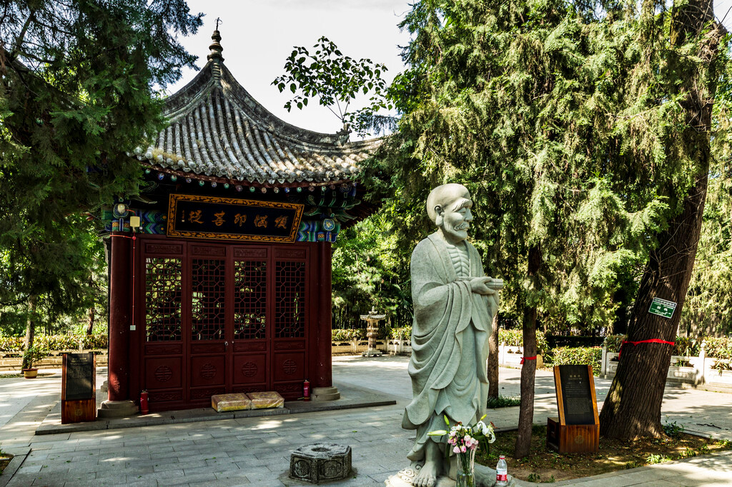 接着是今天的主角草堂寺。一直很想来,但总未成行。草堂寺始建于东晋,原为后秦皇帝姚兴所建的逍遥园,公元401年,姚兴迎鸠摩罗什居于此地,苫草为堂翻译佛经,故名草堂寺,是中国第一座国立佛经译场,也是佛教三大译场中时间最长、规模最大的,是佛教中国化的起点。佛教中著名的「中观三论」、《成实论》都是鸠摩罗什在此译出,所以草堂寺被视为「三论宗」和「成实宗」的祖庭。日本高僧日莲依据鸠摩罗什翻译的《法华经》建立日莲宗,因此这里也被视为日莲宗的祖庭。而华严宗五祖定慧禅师曾在草堂寺著书讲学多年,故又被视为华严宗祖庭。可见其地位之崇高。
