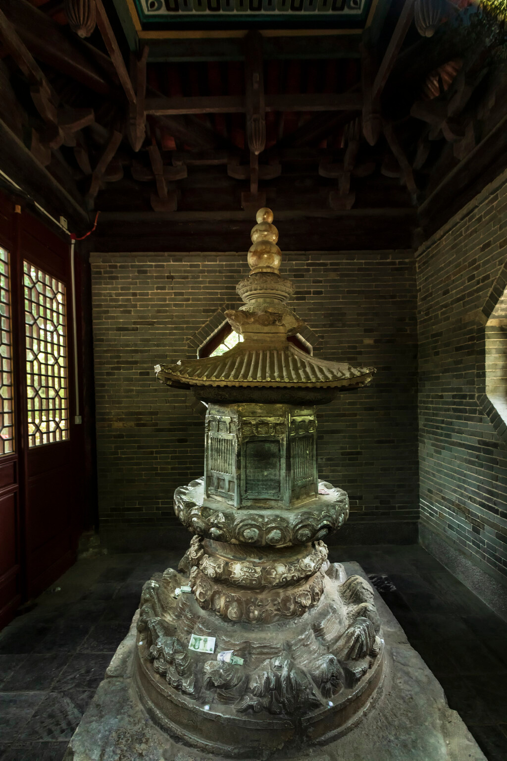 草堂寺内有鸠摩罗什舍利塔,建于唐代,据户县旧志记载,塔石为西域所贡,塔体分别以玉白、砖青、墨黑、乳黄、淡红、浅蓝、赭紫、银灰8种颜色玉石镶拼雕刻而成,所以称为“八宝玉石塔”。高2.5米,8面12级,亭阁式样,方形底座,周围阴刻浅浮雕图案。底层为圆盘状,沿盘周边浮雕出须弥山、佛像、瑞兽等。塔亭是1956年所建,只能隔着玻璃拍照。鸠摩罗什的舌舍利依其遗愿送到现在的甘肃武威,也是这次旅行目的地之一。