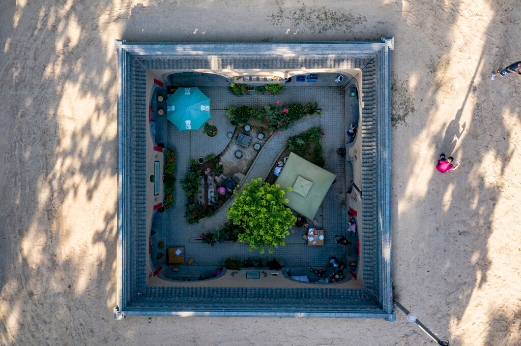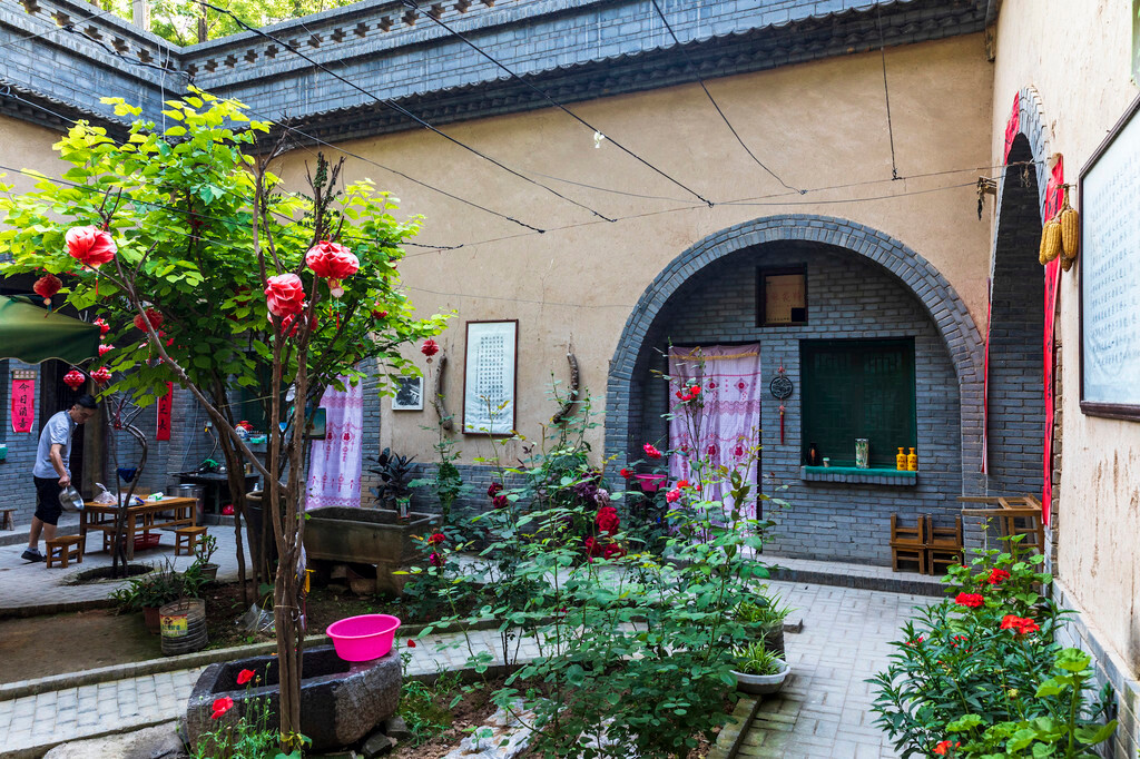 从兵马俑博物馆到三原地坑院大约100公里。三原地坑院在当地的标示是「柏社地窖」,因为具体位置是三原县柏社村。根据资料,共计有211院,保存完好的134院,经常有人居住的25院,其他已经废弃。地坑院又叫天井院,顾名思义就是平地往下挖,有段民谣形容得好: “上山不见山,入村不见村,平地起炊烟,忽闻鸡犬声”。三门峡也有个陕州地坑院景区,但我们两人都比较喜欢原汁原味的景观。这里好几个地坑院办起了农家乐,我们决定在这里吃晚饭,品尝当地特色,然后到西安住宿。
