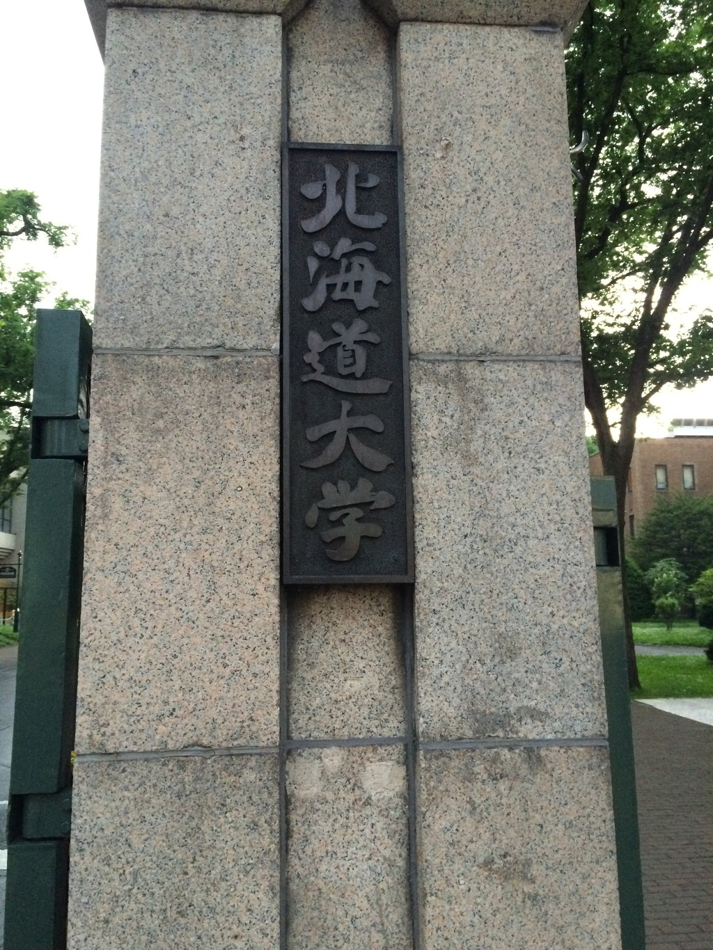 北海道大学离酒店非常近,虽然下着雨,我们仍旧想进去看看,几幢老楼在雨夜里显得更深沉。当地人称北海道大学是北大,农业有关的是重点学科。在校园里遇到几个泰国人、印度人。我在猜想是不是都是来学农学的。